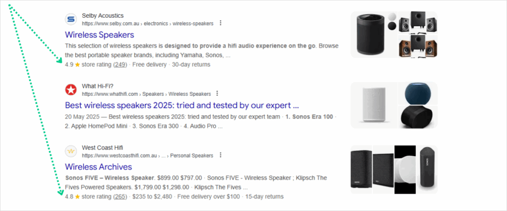 These measures not only improve your chances of visibility through seller ratings in search results, but they also help reinforce trust at a glance, supporting your broader organic strategy.