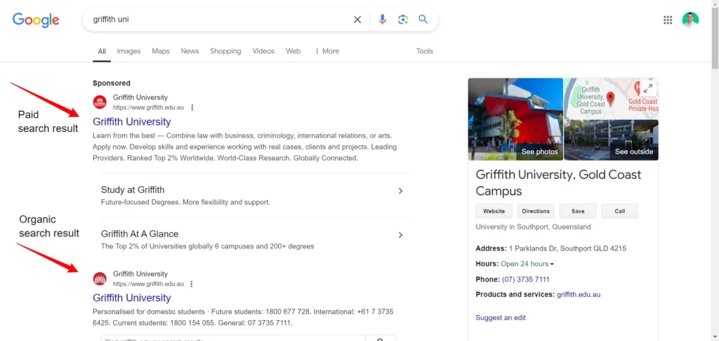 2. Dominating Search Results: By appearing in both paid and organic results, you effectively occupy more real estate on the SERP. This increased presence can push competitors further down the page, enhancing your brand’s visibility and credibility.
